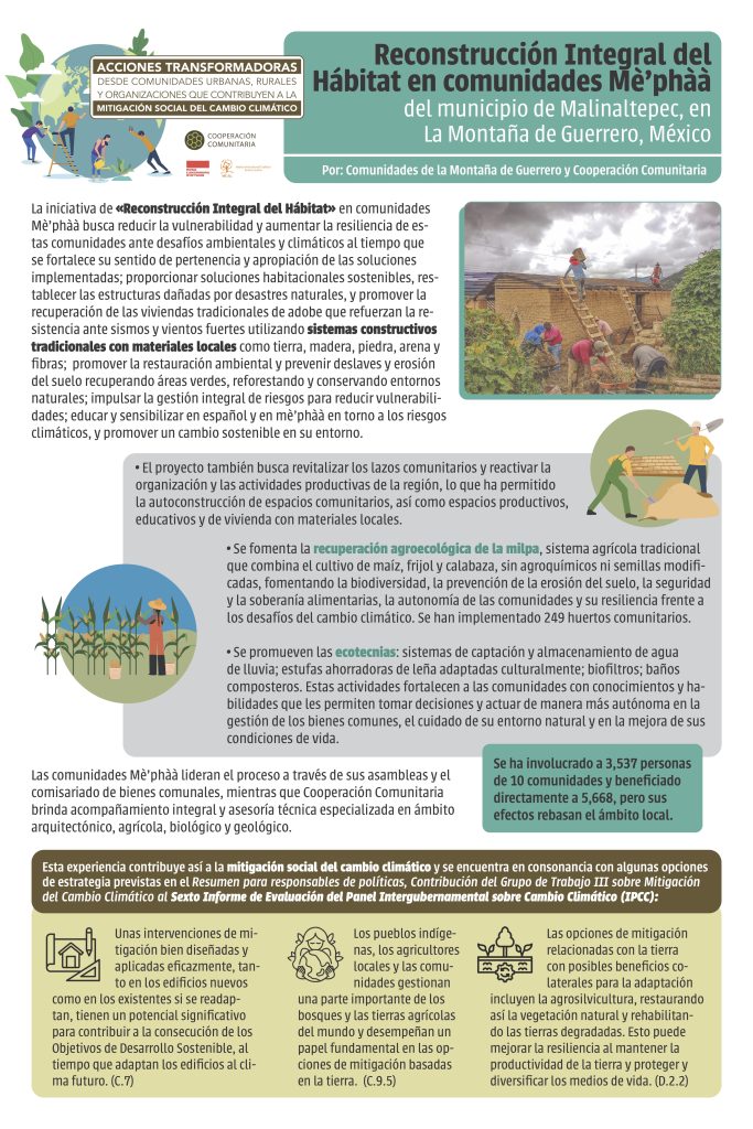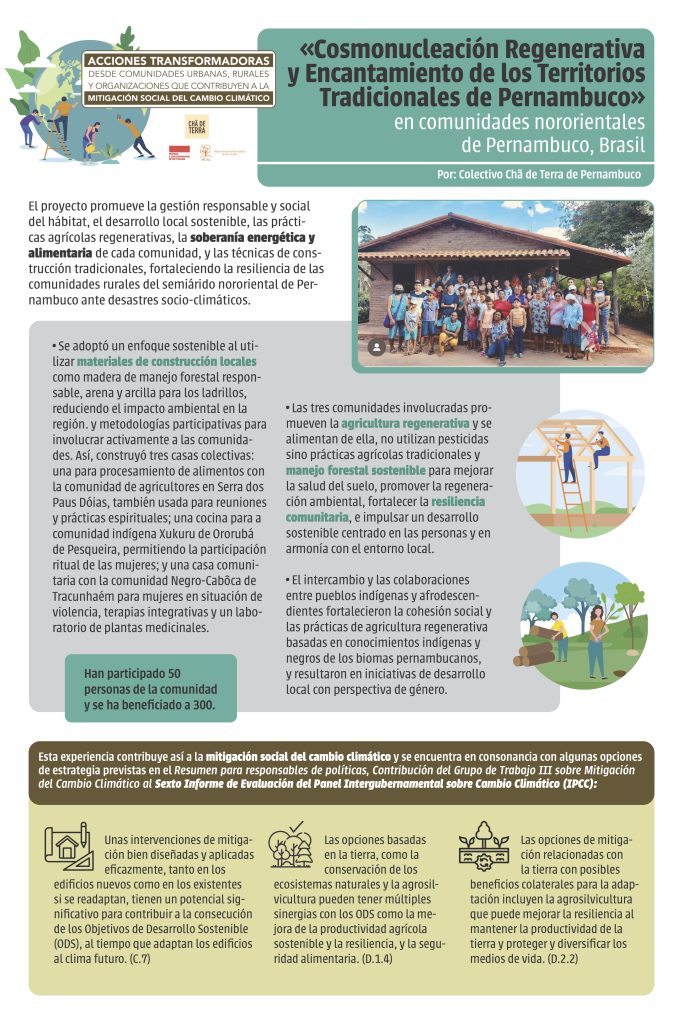 Los casos incluyen iniciativas de reforestación, agroecología, autonomía energética, gestión comunitaria del agua, vivienda segura con materiales locales, justicia climática y regeneración de ecosistemas. Cada experiencia demuestra que las comunidades organizadas pueden generar soluciones innovadoras, justas y sostenibles.