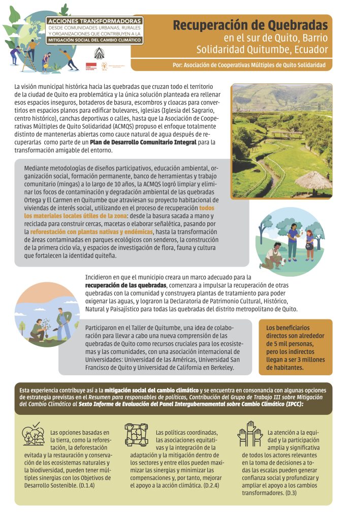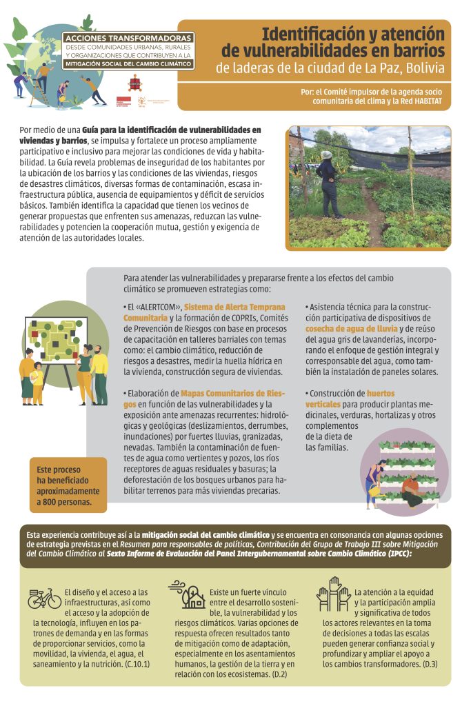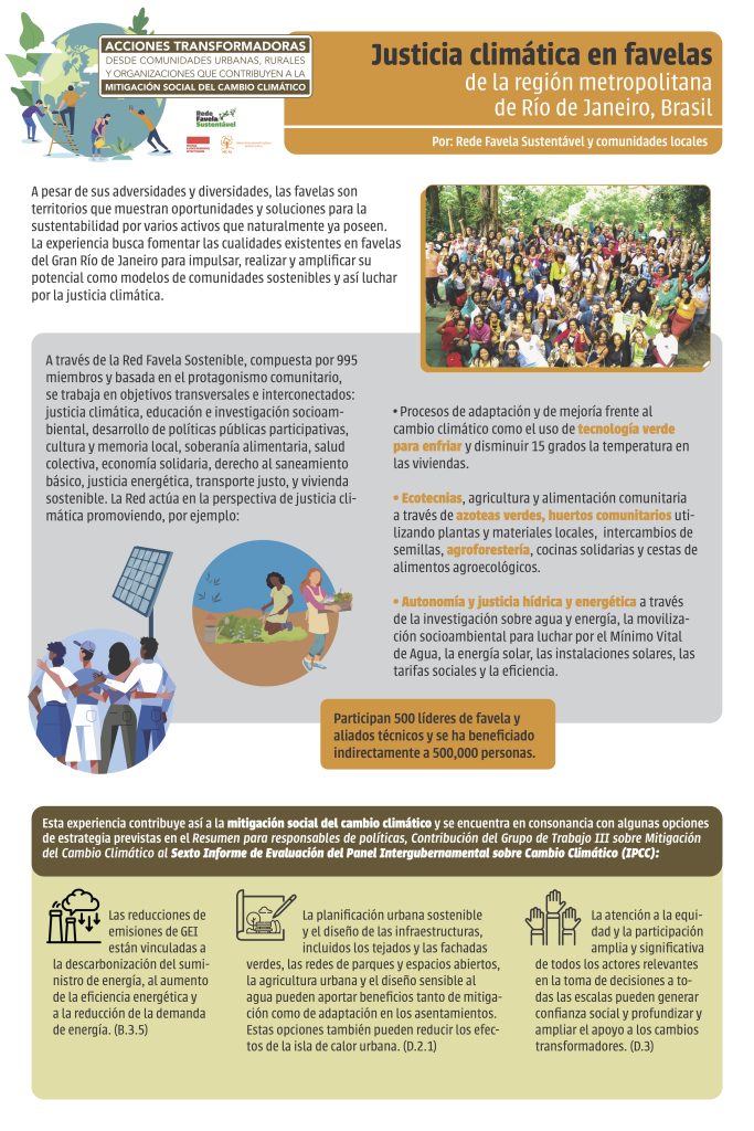 A partir de esas presentaciones, la Oficina Regional de HIC para América Latina (HIC-AL) realizó un proceso de sistematización a la luz del Sexto Informe de Evaluación del Grupo Intergubernamental de Expertos sobre el Cambio Climático (IPCC) encontrando consonancia con algunas opciones de estrategia previstas en el Resumen para responsables de políticas del Grupo de Trabajo III sobre Mitigación del Cambio Climático del IPCC.