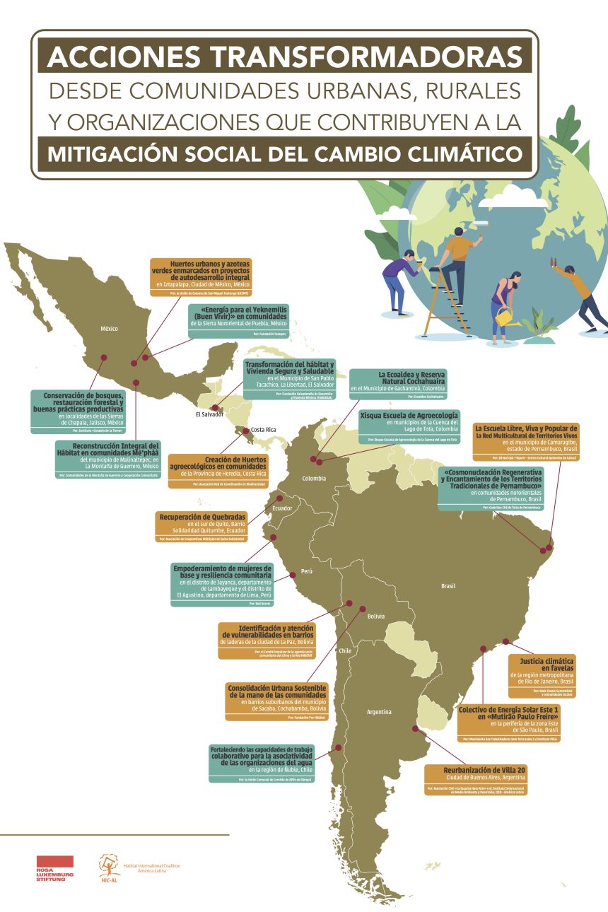 En noviembre de 2023, durante el Foro “La crisis del hábitat y el cambio climático: de las respuestas locales al debate internacional”, se presentaron 18 experiencias (9 urbanas y 9 rurales) que muestran cómo comunidades y organizaciones de América Latina y el Caribe están enfrentando la crisis climática desde sus territorios.